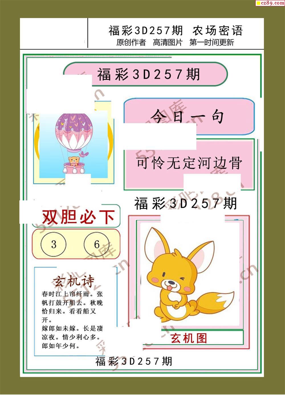 > 25年福彩3d257期农场密语彩报