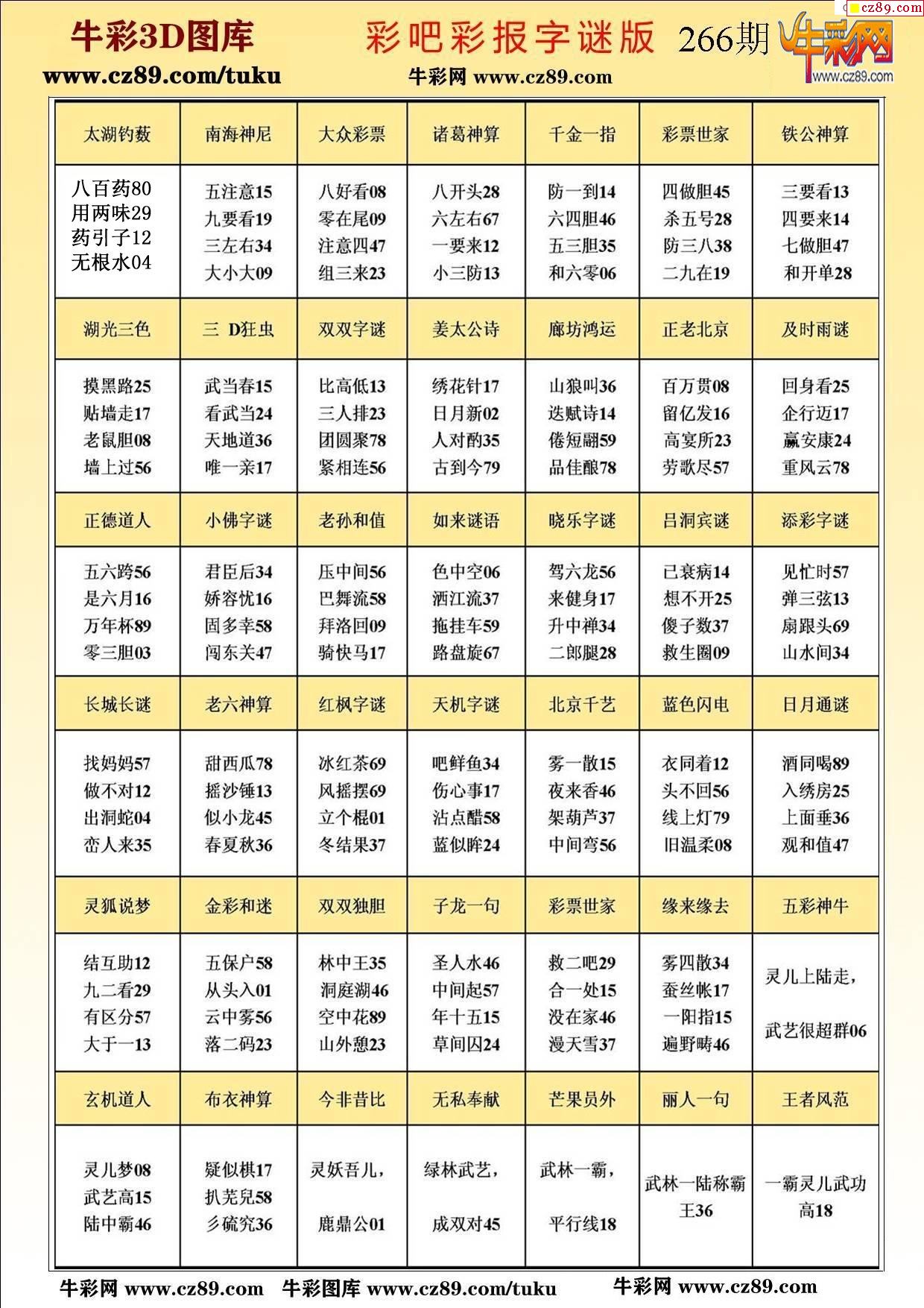> 牛彩版3D字谜彩报图25年266期打印版