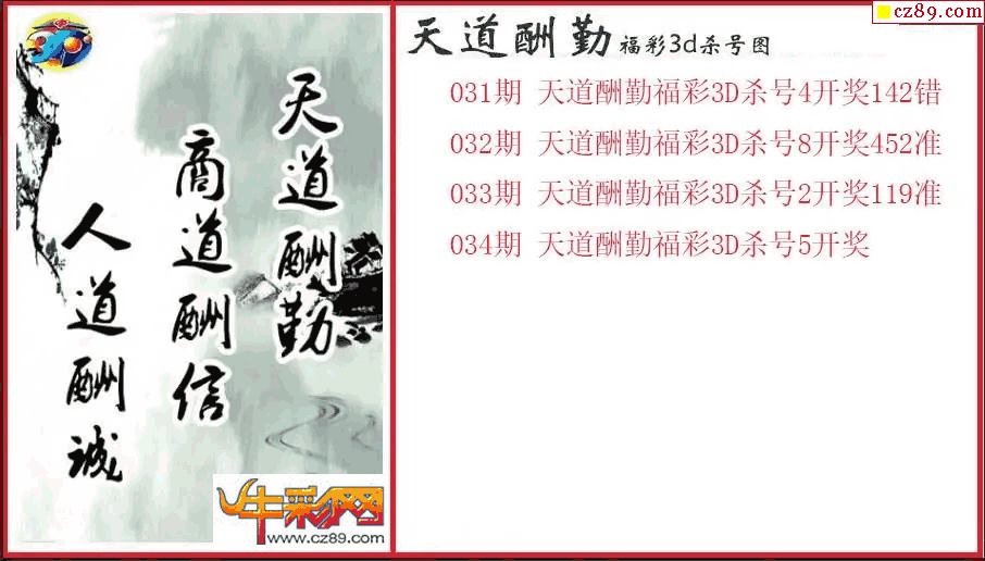 > 26年034期3d 天道酬勤杀号图