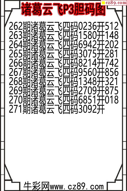 25年271期诸葛云飞P3胆码图