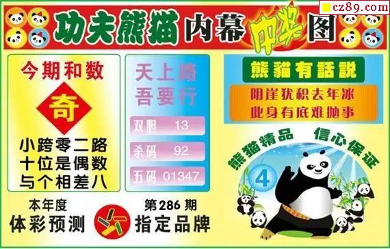 > 体彩P325年图迷286期 功夫熊猫内幕中奖图